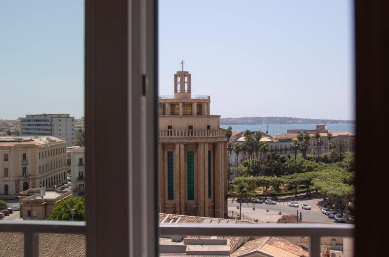 Questo appartamento regala la vista più stupefacente direttamente sul maestoso Pantheon di Siracusa e sull’incantevole Ortigia, oltre a un meraviglioso scorcio sul mare: uno scenario unico che renderà indimenticabili le vostre colazioni all’alba e i tramonti dai colori mozzafiato.
